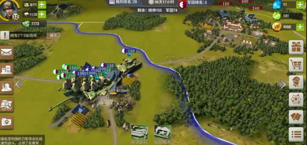 资源拓展与战力升级同步进行,主城升至四级后建造高产油田,解锁石油资源,石油是后期装甲部队与空军的核心消耗,必须提前储备,同时将兵工厂与陆军基地提升至对应等级,解锁轻型坦克、侦察车等机械化部队,组建装甲编队提升作战能力,期间需完成多座炮塔部署,强化主城防御,防止被其他势力偷袭,资源建筑全部落成后,资源产出趋于稳定,可支撑大规模部队训练与科技研发,为后续战役作战打下坚实基础。